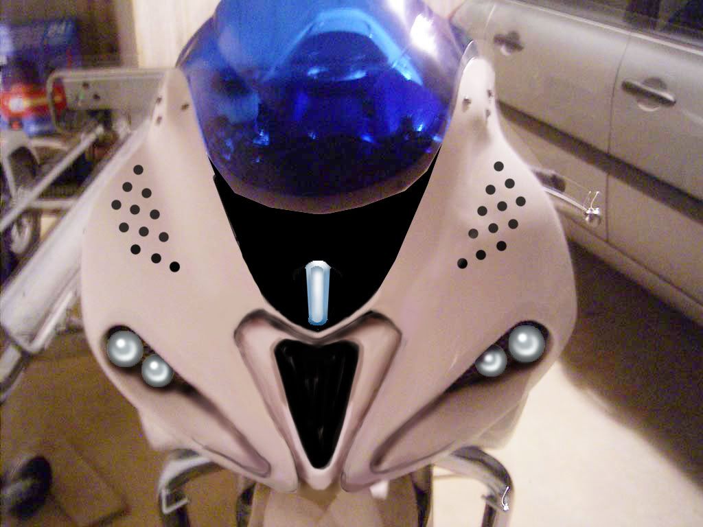 Al limite potrei disegnare una targa portanumero ma ho fatto una prova e mi sono confuso le idee ancora di più, mi spiego meglio ho provato a disegnare una tabella portanumero delle dimensioni più o meno simili a quelle occupate in precedenza dal faro ma non mi convince. Ho anche provato a vedere come butta una specie di V al centro del cupolino sul tipo del cupolino della Suzuki Moto GP 2005 ma anche lì non sò decidermi sul colore da usare e l'eventuale sfumatura.